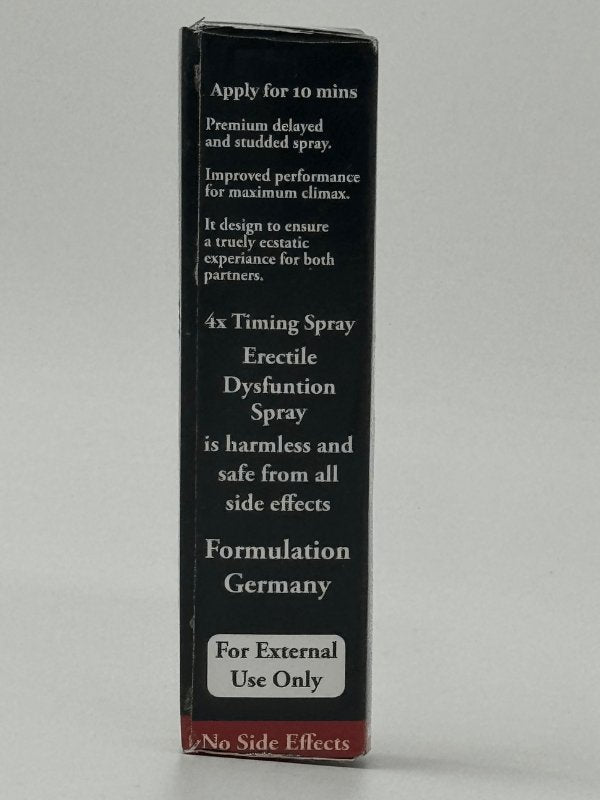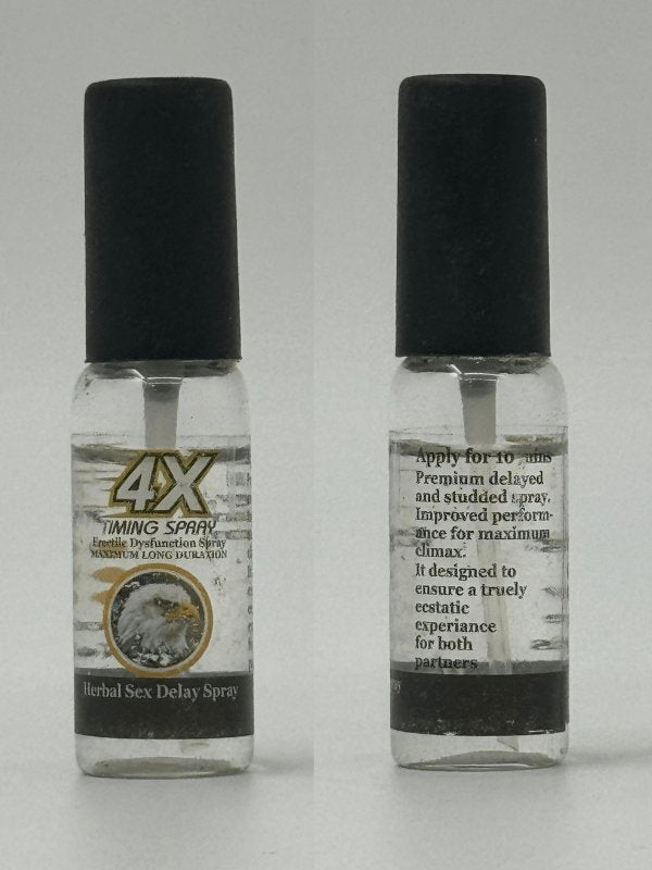 4X Delay Spray, also referred to as a Erectile Dysfunction Spray or Herbal Sex Delay Spray, is designed to be applied topically to the penis before sexual intercourse for men seeking to improve their sexual performance and extend their sexual experiences.