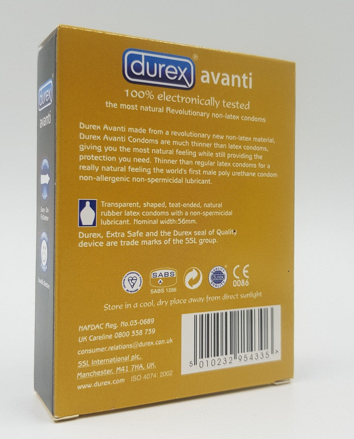 Original Durex Condom: Choosing an original Durex Avanti condom ensures that you are getting a genuine product that meets the brand's strict quality standards. Always look for the Durex logo and packaging details to ensure authenticity and reliability.