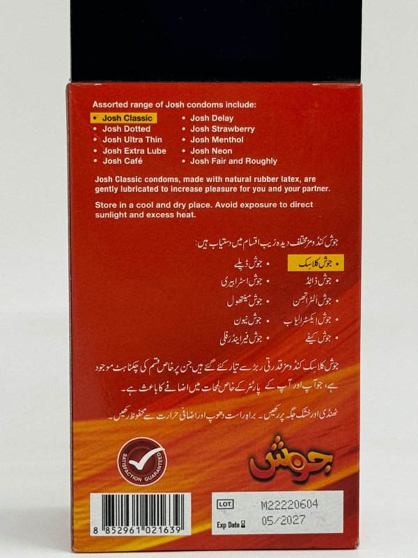 Josh Condoms Quality: Josh condoms are manufactured to the highest international quality standards(ISO 4074) made from premium quality latex or non-latex materials, ensuring strength, flexibility, and sensitivity during intimate moments.