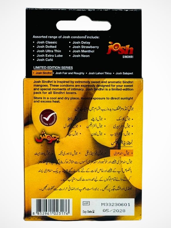 Josh Sindhri Condoms - 12 x 3 Mango Flavor Condoms Pack