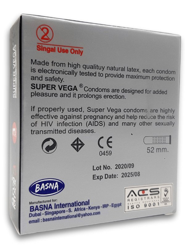 Original Super Vega Condom: Choosing an original Super Vega condom ensures that you are getting a genuine product that meets the brand's strict quality standards.