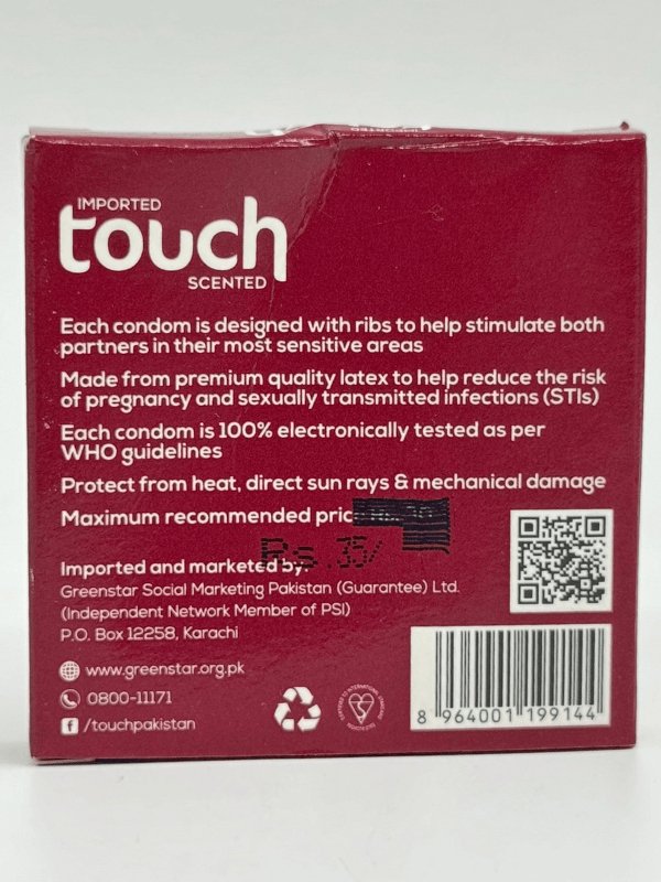 Touch Condoms Quality: Touch Condoms are made from premium quality latex materials, ensuring strength, flexibility, and sensitivity during intimate moments.